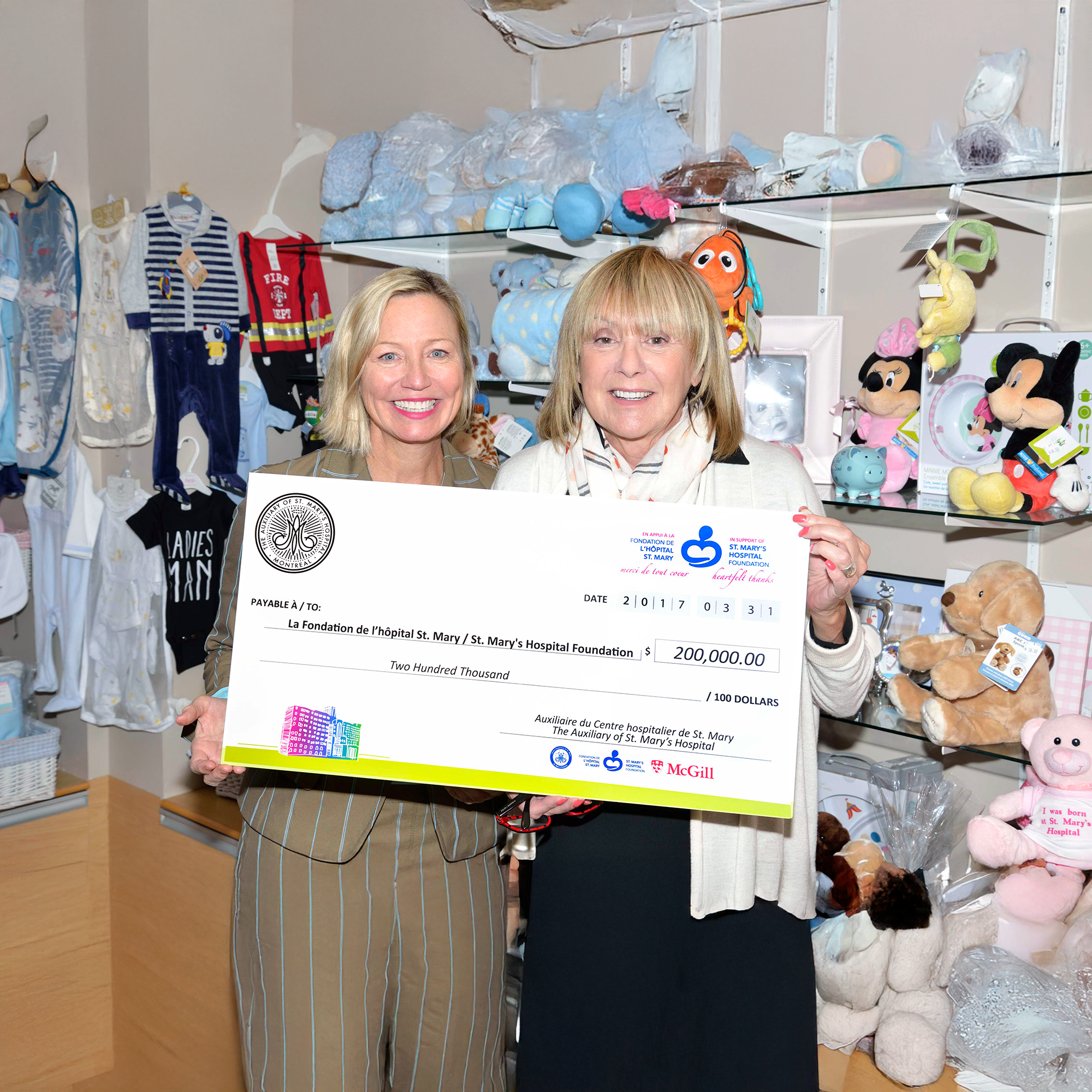 Depuis l'ouverture de nos portes en 1924, l'Auxiliaire de l'Hôpital St. Mary's joue un rôle essentiel au sein du Centre hospitalier St. Mary's. Grâce aux fonds amassés par l'exploitation de la Boutique de Cadeaux, du Coin du Livre et du Café, l'Auxiliaire a permis l'achat d'équipements, le financement de la recherche, la rénovation de départements et l'amélioration des soins aux patients. Au fil des années, l'Auxiliaire de St. Mary's a recueilli des millions de dollars et offert des milliers d’heures de bénévolat afin que chaque personne qui franchit nos portes se sente accueillie.